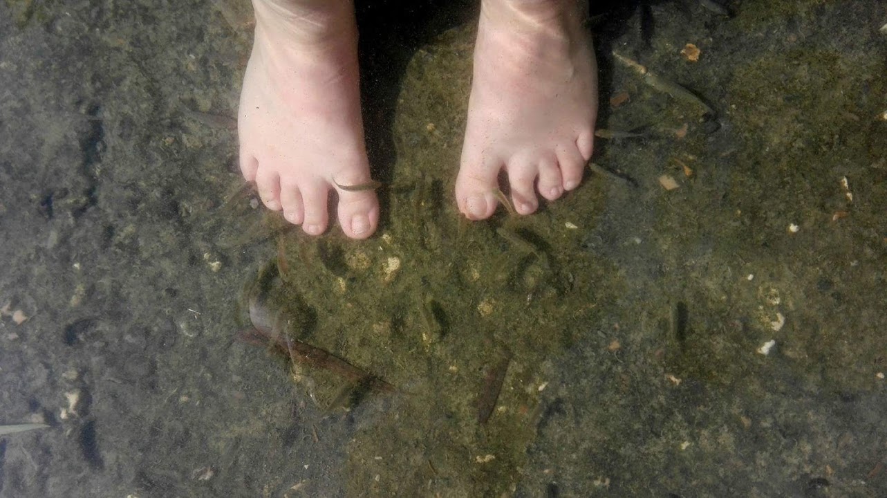 Biztos voltam benne, hogy valóban jelen van Isten. Úgy éreztem magam, mintha egy ünnepen lettem volna, de azt hiszem valóban azon is voltam. Az ottaniakról áradt az Úr szeretete, mosolyogtak ránk és volt, aki még beszélgetni is oda ült hozzám. Ha külön lapon említjük a szellemi valóságát és fizikális létét a helynek, akkor e módon is bőven megállja a helyét. A folyó színe türkizzöld, kellemes hőfokú, a környezete virágzó és tele van zöld növényekkel. Apró kis halak úszkálnak az ember lába körül, de tényleg nagyon kis parányiak. Köpni-nyelni nem tudtam, mikor először kezdték el csipkedni a lábfejeimet. Egyébként is a csiklandós emberek nemes táborát erősítem, ezért nehézségek árán végül sikerült megszoknom. Mindeközben természetesen élveztem is az egészet, vicces élményként raktározom el, és egyébként is teljesen ingyen pedikűr.